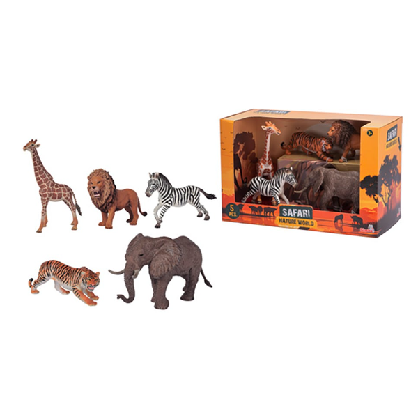 Discover this safari animals set featuring a lion, tiger, elephant, giraffe and zebra! Each of these magnificent animals measures between 9 and 12 cm, ready to take you on an exciting adventure across the vast expanses of the savannah. Let your child explore the wild world and create captivating stories with this safari animal set. Encourage discovery and fine motor skills with the Safari Nature World 5 Pack Animals. These high-quality, jumbo-sized figures help children learn about wildlife habitats and storytelling. Ideal for EYFS classrooms and small world play. Embark on a wild adventure with the Safari Nature World 5 Pack! Includes five iconic animal figures made from durable, non-toxic materials. The perfect gift for young explorers and animal lovers. Suitable for kids aged 3 years and over.