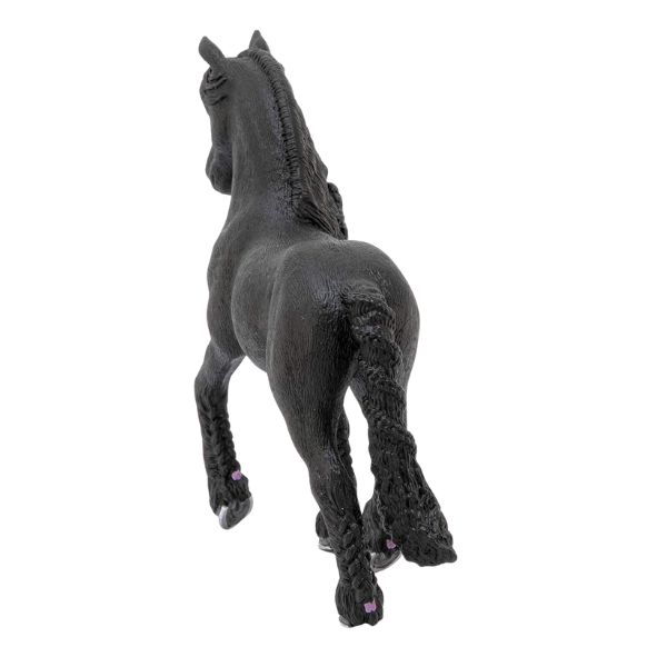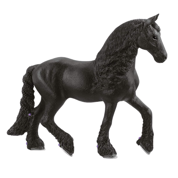 Schleich 13906 Frisian Mare. Frisians were named after their home, the Dutch Friesland, and are one of the oldest horse breeds in Europe. They have a characteristic black coloured coat, a magnificent mane and a pretty tail. Another feature of Frisians is the long hair on their legs. The Frisian mare by Schleich® Horse Club has elaborate braiding on her fetlock, which makes her a unique collector’s item.