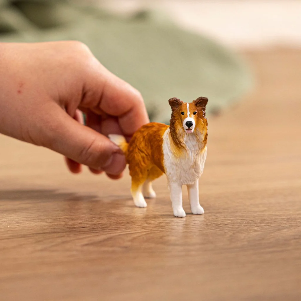 Introducing the Schleich 13998 Collie. The Collie is a beauty with its long, white and brown coat. It has a ruff of silky white fur that almost looks like a mane. But this dog is not to be underestimated. Although they love humans and are very fond of children, they are also great watchdogs.