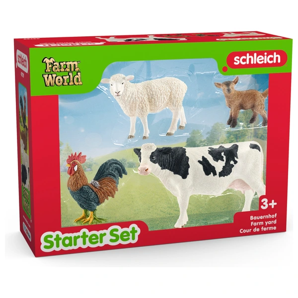 Introducing the Schleich 42729 Farm Starter Set. There is always something going on on the farm, because there are lots of animals here. The placid Holstein cow is not easily disturbed. The rooster with his magnificent plumage is quite a different matter.