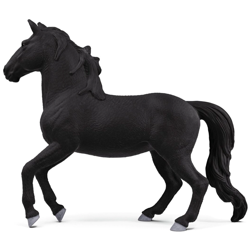 Add this schleich Horse Club 14918 Lusitano Stallion figure to your collection today! The proud Lusitano stallion looks simply magnificent. The coat shines pitch black from the thick mane, which falls luxuriously over the strong neck, to the long tail. Only the forehead is adorned with a pretty white-wedge star. No wonder this Portuguese breed was particularly popular at royal courts. Age 3+ years