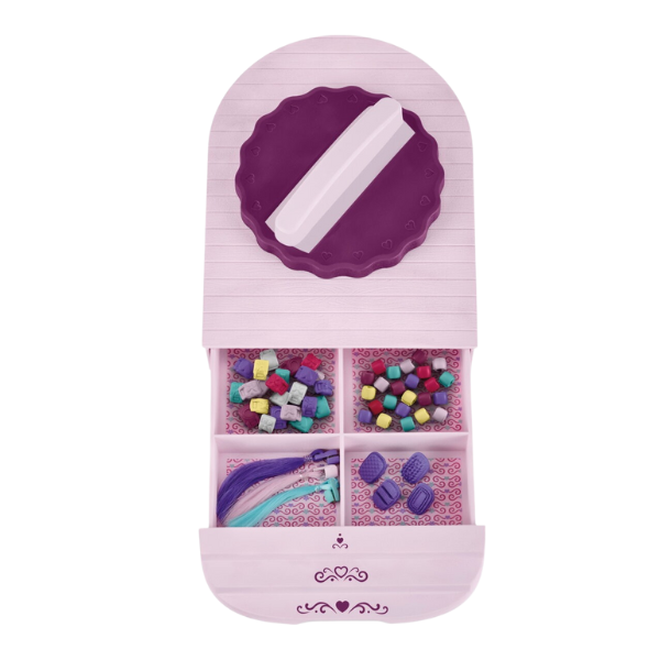 Thanks to the tailor shop in Sofia’s Beauties Horse Beauty Salon, every accessory can be made to measure. Little foals, sporty ponies and powerful stallions can proudly present their new outfits on the podium! Use the drawer underneath to store all the hair accessories, clips and beads.