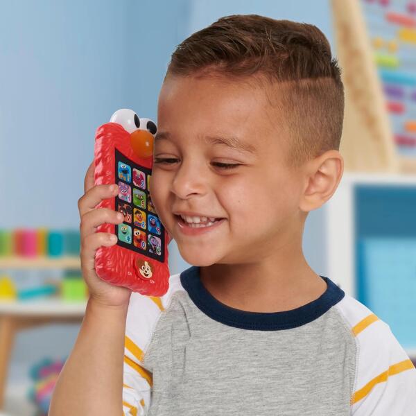 Introducing the Sesame Street Learn with Elmo Phone. The Sesame Street Learn with Elmo Phone toy plays the “Wheels on the Bus” song and over 50 learning phrases to teach kids counting, colors, shapes, rhyming, Spanish, and more. Kids will love learning along with Elmo and friends! This colorful, interactive toy phone features 12 buttons that represent 12 Sesame Street friends. Press any button to hear phrases related to that character.