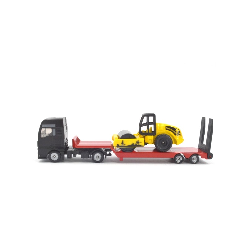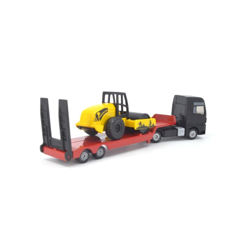 Introducing the Siku 1:87 MAN TGX Truck with Compactor. This year, siku is rolling out a real construction site sensation. The MAN truck with low-loader comes in three unbeatable versions. Whether with a road roller, backhoe loader or bulldozer on the back. This low-loader is not a truck like any other but the VIP shuttle that gets the heroes of the construction site moving. And that is fitting, because for over 100 years the MAN brand has stood for real heavyweights that not only transport tons of material. But also move the dreams of engineers and master builders worldwide.