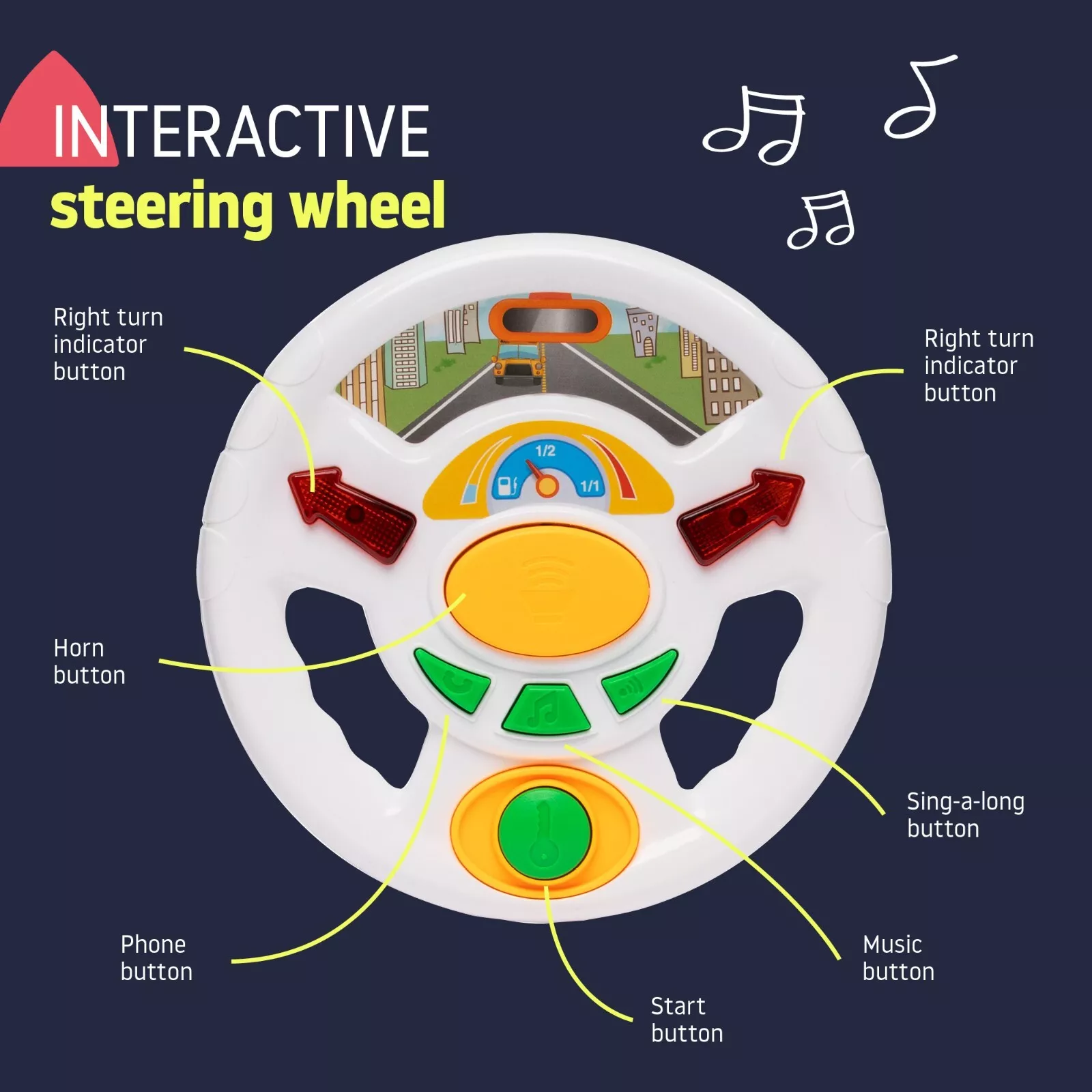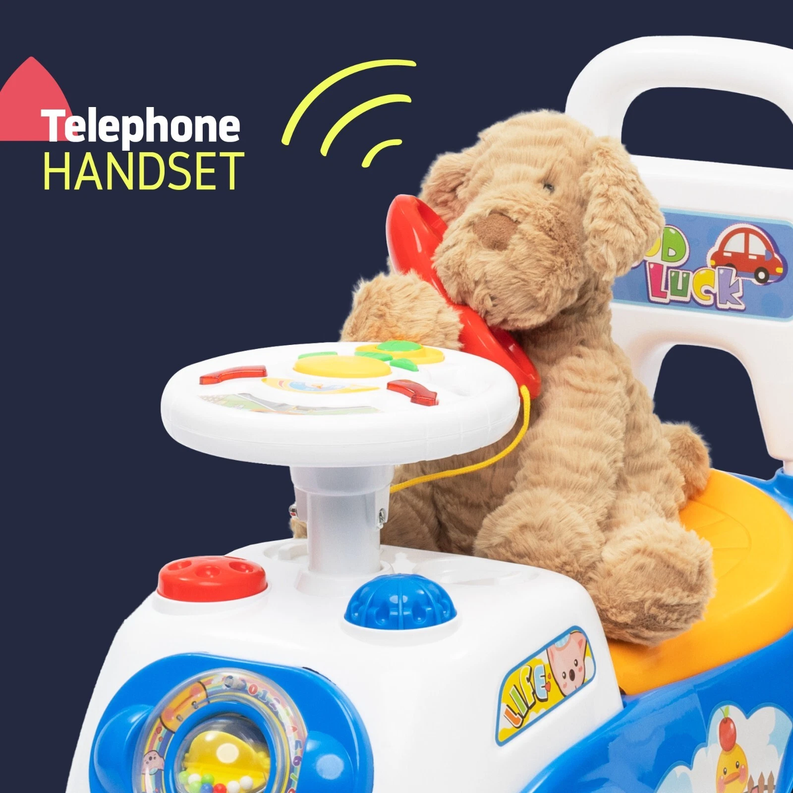 Spark active play with the Sit n Ride With Sounds. Features fun melodies, lights, and a sturdy design for toddlers. Perfect for indoor and outdoor fun! Support motor skills and sensory play with the Sit n Ride With Sounds. Interactive buttons and steering for a fun, musical ride. Functions as both a sturdy sit-on rider for zoomed-around fun and a stable push-along walker to help build confidence in early steps.!