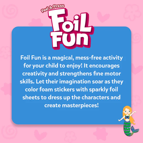 Select a picture canvas, apply sparkly foil sheets using the included stickers, and watch the picture come to life! Skillmatics Foil Fun has been honored with The Toy Insider Award 2023 for Top Summer Toys. This recognition highlights the quality and enjoyment your child can expect from this product.