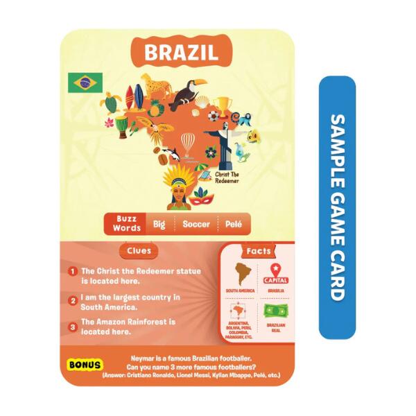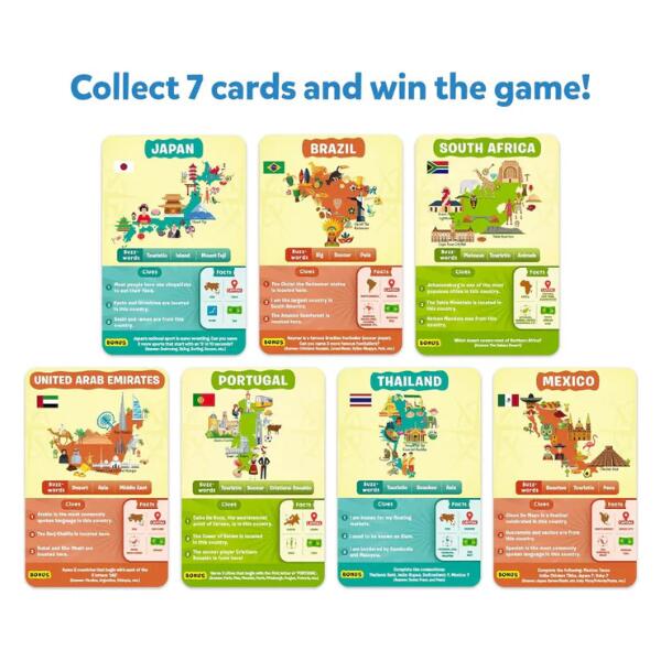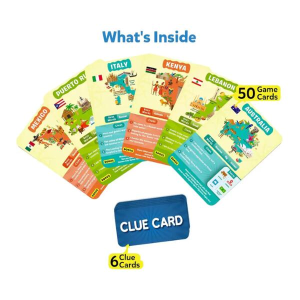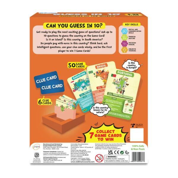Skillmatics Guess in 10 Countries Of The World Game is Super Fun for Travel & Family Game Night. Get ready to play the most exciting game of questions! Ask up to 10 questions to guess the country on the game card! Is it an island? Is this country in south America? Do people pay with euro sham in this country? Think hard, ask intelligent questions, use your clue cards wisely, and the be the first player to win 7 game cards! This game includes 50 game cards and 6 clue cards.