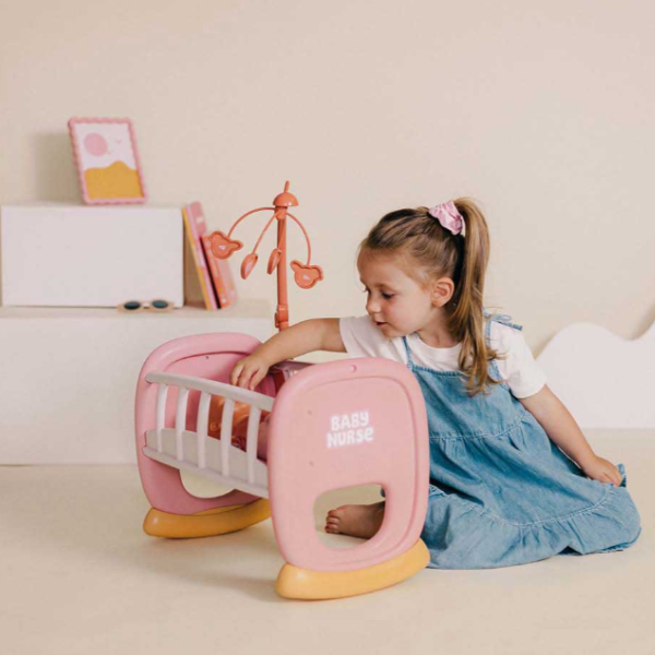 The Smoby Baby Nurse doll cradle is both a cradle and a doll’s bed. With the beautifully designed cradle in your favorite colors, you can gently rock your doll to sleep. The manually rotating mobile on the cradle helps your little one fall asleep. So your little darling is gently rocked to sleep! Features • Thanks to the high-quality plastic, the doll cradle is very light and easy to transport. • The surface can be quickly cleaned with a virtual cloth. • Suitable for dolls up to 42 cm. Delivery without doll. • Dimensions: 47 x 28 x 59.4 cm. • Suitable for children from 18 months.