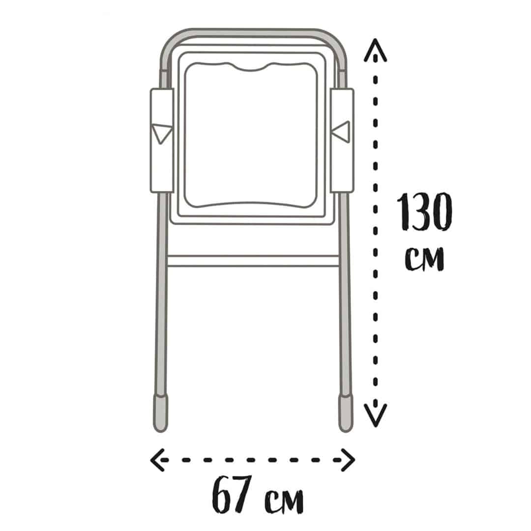 The easel consists of two boards. Black board – slate, designed for drawing with chalk. The white board is magnetic, for drawing with a special erasable marker and magnetic elements. The white board is easily adjustable according to the height of the baby. You can also draw a picture on paper by fixing it with a holder.