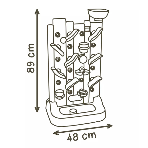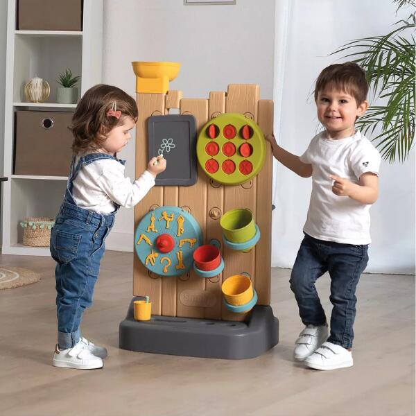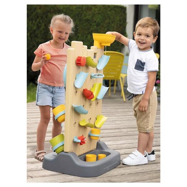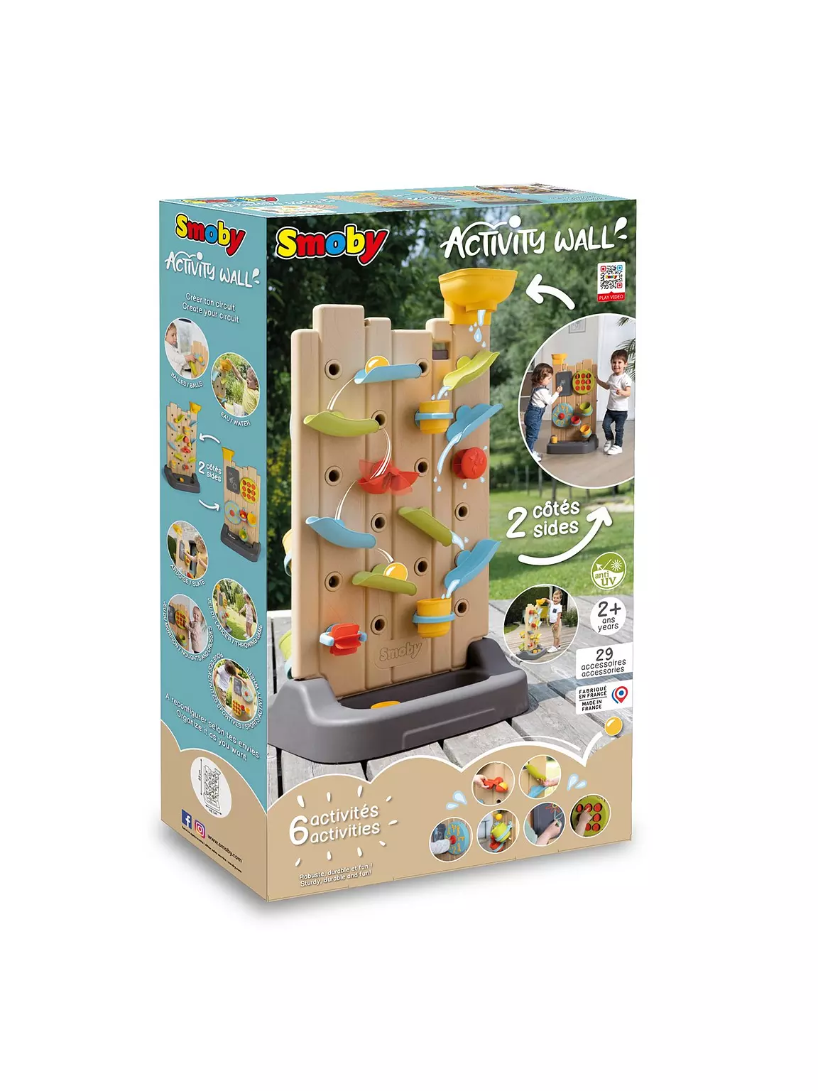 The garden is an ideal playground to have fun with water, to throw balls, or to play sports… The Smoby Life activity wall will keep your children busy for hours on end with its 6 activities! On the first side: time for experimentation. Create your own circuit to play with water or with the 2 balls included. The children can modulate it as they wish with gutters, a tank, a rocker, cups and paddle wheels. On the second side of the wall: a tic-tac-toe, a throwing game, a slate and a sports wheel. To play alone or with others, these elements will contribute to the development of logic, dexterity and motor skills of children. A total of 29 accessories are included. Resistant and equipped with anti-UV this activity wall will find its place in all your outside, but also inside. Assembled dimensions: W48.2 x D42.8 x H88.5 cm