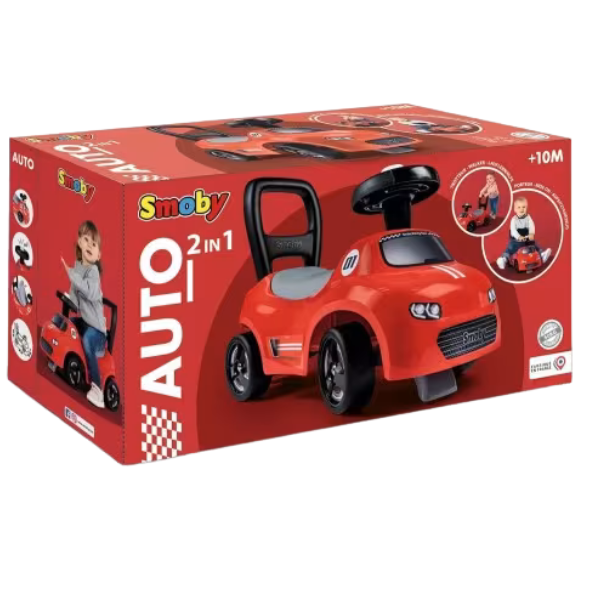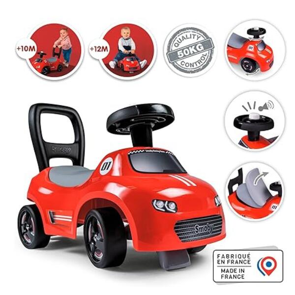 Introducing the Smoby Red Ride On. Walking aid – The clever product design also offers a back support that you can grip. This allows you to practice the first steps when pushing the car. Secret storage compartment the seat can be opened and there is a storage compartment for the favourite toys of the little ones. This Smoby Ride On is ideal for any little ones first steps, and is also sure to provide hours of fun and entertainment. Suitable for young children aged 10 months and over.