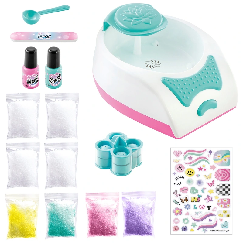 Relax and unwind with the ultimate fizzing hand spa experience! Create 16 scented bath bombs with this So Bomb Hand Spa & Nail Salon kit, then drop them in the hand spa for a tingly, fizzing effect. With mini manicure accessories, create your own DIY nail salon for pampering self-care fun!
