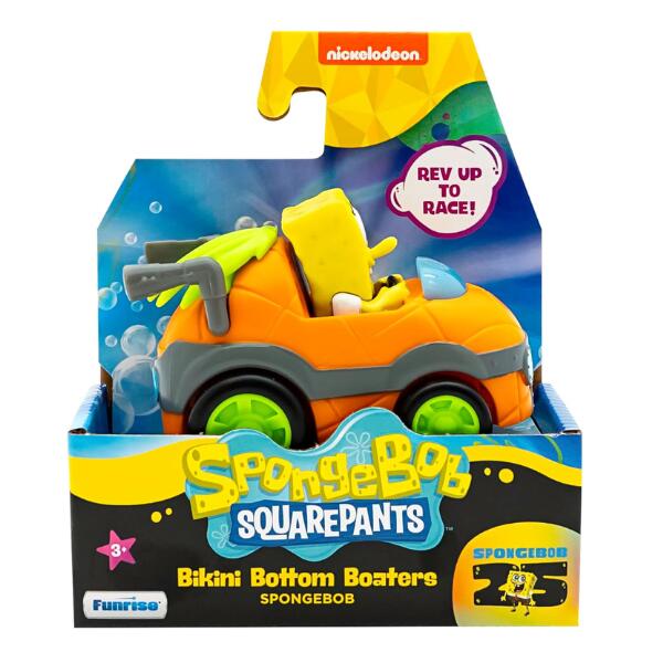 Introducing the all-new Bikini Bottom Boaters – your ticket to revved-up racing fun with SpongeBob and friends! To immerse yourself in nautical nonsense, simply hold the vehicle, rev in a forward motion, and release to watch Patrick zoom into action! Classically designed with the beloved character Patrick in his ice-cream cone themed vehicle. Collect them both for endless revved-up fun! Appropriate for ages 3 and up. Hold the vehicle, rev in a forward motion, and release to watch Patrick zoom into action.