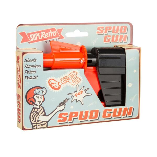 Spud Gun, The toy works by pushing the barrel into a potato to create a pellet, which is then shot by squeezing the trigger.