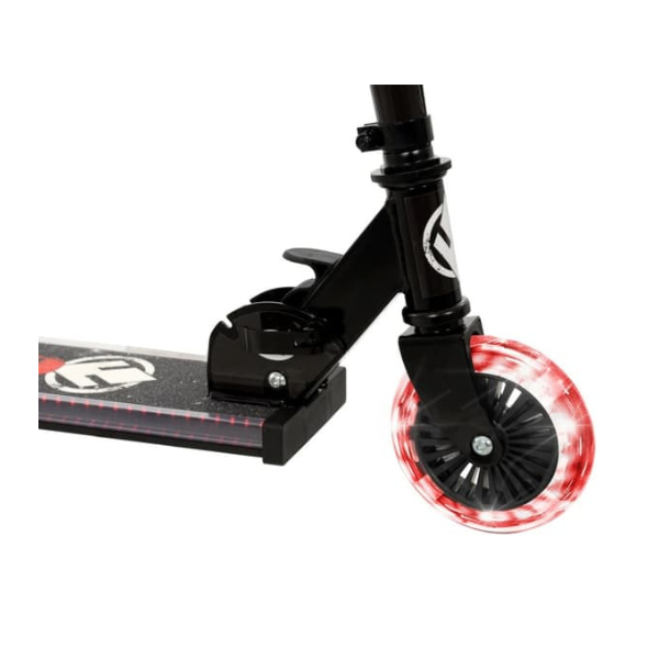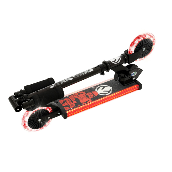 Introducing the Star Wars Dark Side Inline Scooter. Embark on an intergalactic adventure with the Star Wars Dark Side Electro Lite Folding Inline Scooter, the perfect companion for young explorers. This scooter lights up the path with striking Sith red LED lights on both the deck and wheels, ensuring a stylish and visible ride. Its foldable design allows for quick and easy storage, making it ideal for spontaneous outdoor fun. Safety is a priority with the responsive rear footbrake, offering dependable stopping power. The scooter features bold, iconic Star Wars graphics, ensuring you ride in style. Ready to use straight out of the box, it requires no assembly. Suitable for riders up to 50kg, this scooter is perfect for all sizes.