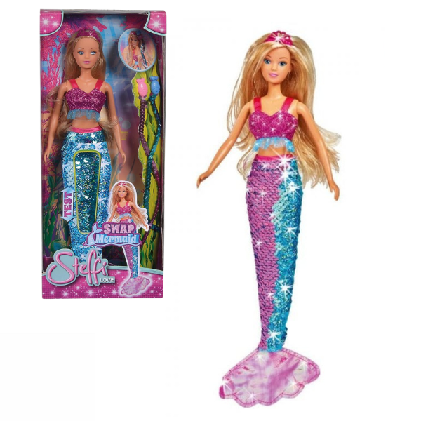 The included two colourful hair strands can be attached to the hair both at Steffi and the girls. Steffi Love Swap Mermaid by Simba Toys is suitable for children aged three and also over.
