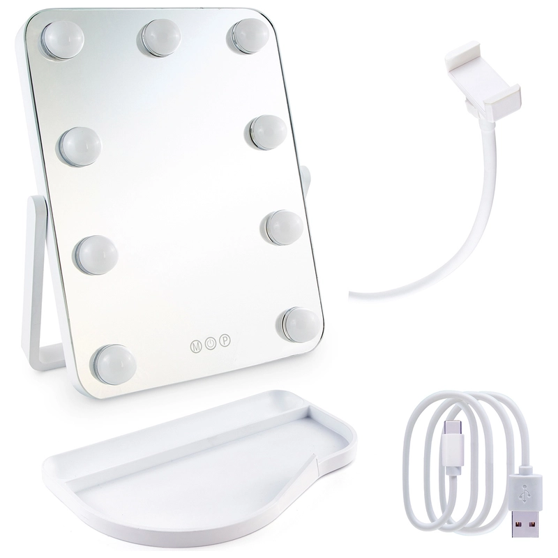 Get your best angle with the built-in 360° phone holder, film yourself, take selfies or watch videos. It’s ideal for filming Get Ready With Me videos, selfies or tutorials. You can easily adjust the lighting with 3 modes and control brightness via the touch screen. Includes a removable storage tray for all your beauty essentials!