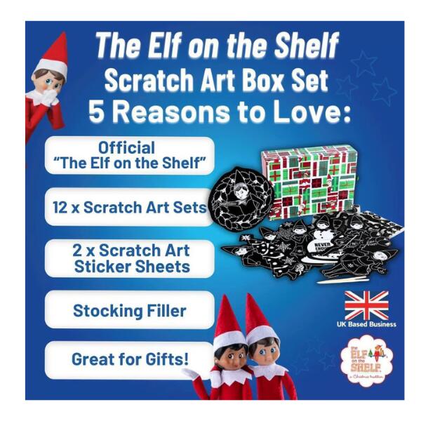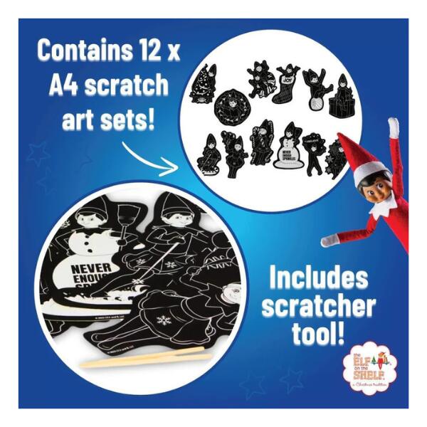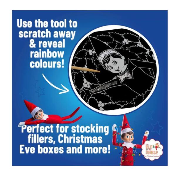 Introducing the The Elf on the Shelf Scratch Art Box Set, Bring the magic of The Elf on the Shelf® into your home with the captivating Scratch Art Box Set. Unlock your child’s creativity and imagination as they embark on a festive artistic journey, crafting stunning Scout Elf-themed masterpieces.