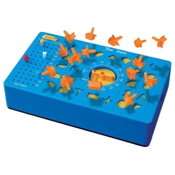 Introducing the Time Shock Game. A frantic wind-up game of beat-the-clock! The aim is to insert all of the shaped pieces into the correct slots before the timer expires; when the timer goes, the pieces are all thrown out again! Awesome fun – even for sober adults! Suitable for children aged 5 years and over. Content: several shaped pieces. Check out more in our Board Games
