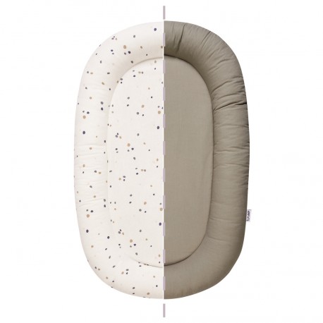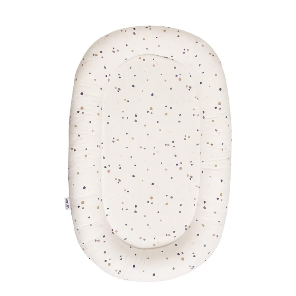 This reversible bed reducer features plain fabric on one side and a stylish terrazzo print on the other . This also offers versatility to customize your baby’s sleeping space.