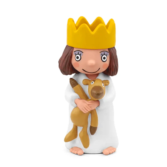 Introducing theTonies Little Princess. The Tonies Little Princess character magnetically attaches to the Toniebox (sold separately), allowing you to listen to something different every time. Switch with other Tonie characters and quickly jump between audiobooks, music or your own interactive audio adventures. Have you ever been cloud fishing? The Little Princess has, and she’s hopping onto your Toniebox to tell your little prince and princesses all about it. And how to be a cowgirl ( which is surprisingly harder than being royal), how to grow a really big sunflower like Jack’s beanstalk AND how to tap dance.