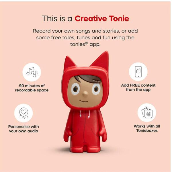 • Use the free Tonies app to find downloadable audio content to your Creative Tonie