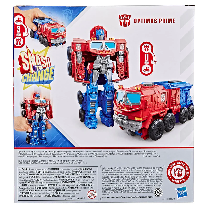 Introducing the Transformers Optimus Prime Smash To Change. Experience classic Transformers action with the Smash Changers Optimus Prime figure. Featuring an easy smash transformation, this iconic Autobot leader converts from robot to truck mode, delivering fast-paced fun for younger Transformers fans. Suitable for kids aged 6 years and over.