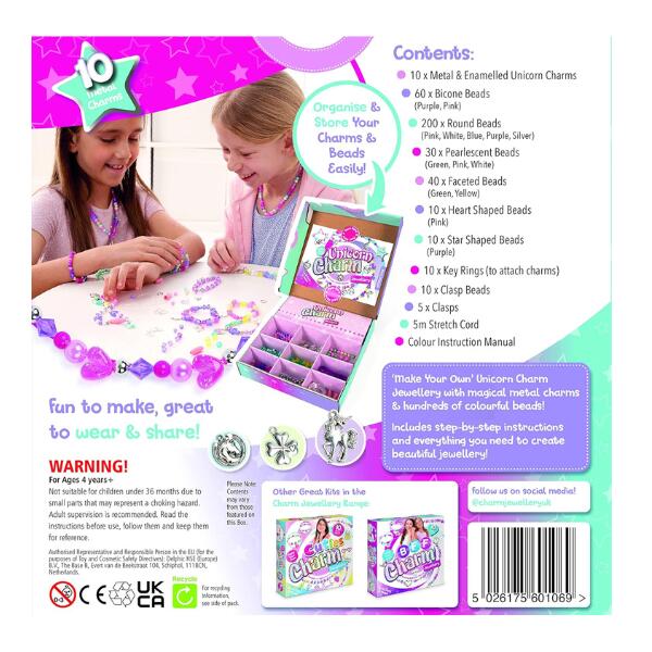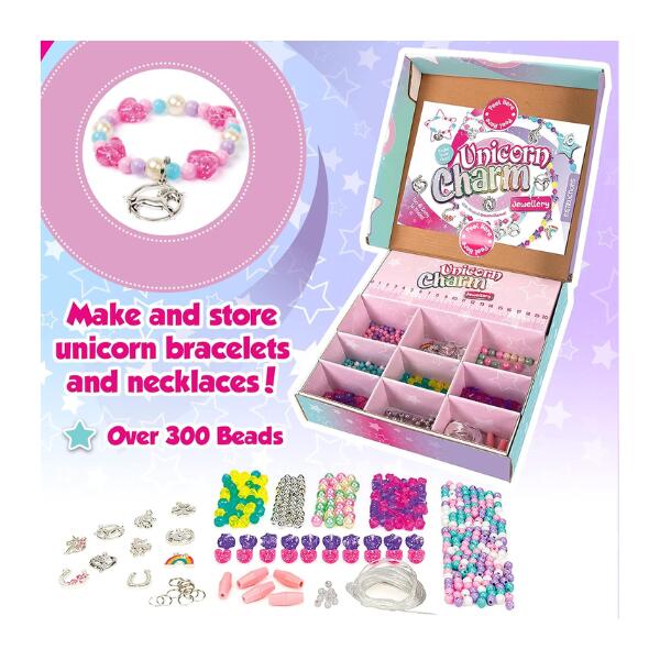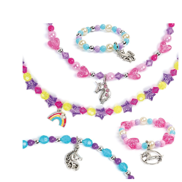 Introducing the Unicorn Charm Jewellery Set, Thread together beautiful charms and sparkling beads to create 10 pieces of delightful ‘Unicorn’ inspired jewellery.
