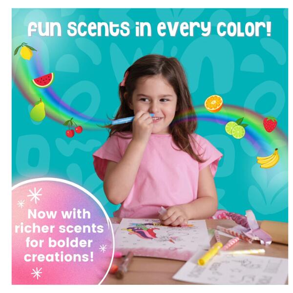 Unlike other products on the market, this set contains a wider variety of different smelly markers. Included are 10 x scented jumbo markers, 10 x scented fine markers, 12 x scented twistable crayons and 12 x mini glitter gel pens – that’s a total of 44 pens! Mix and also match when writing, drawing, colouring or doodling. To create different effects and each one has it’s own silly smell. All markers in this art set for kids conform to ASTM D-4236.