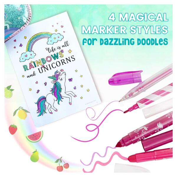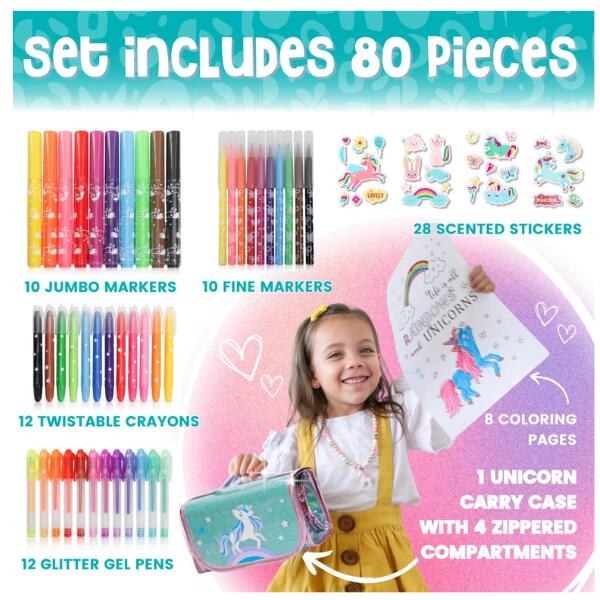 As an added bonus to this kids markers set, you will receive four sheets of scented stickers, featuring our very own Itsy Unicorn . Just scratch and sniff the yummy smells for that added fun! Our artist has also designed 7 Itsy Unicorn downloadable colouring sheets for you to print, so your little girl can color and design Itsy anyway she likes!