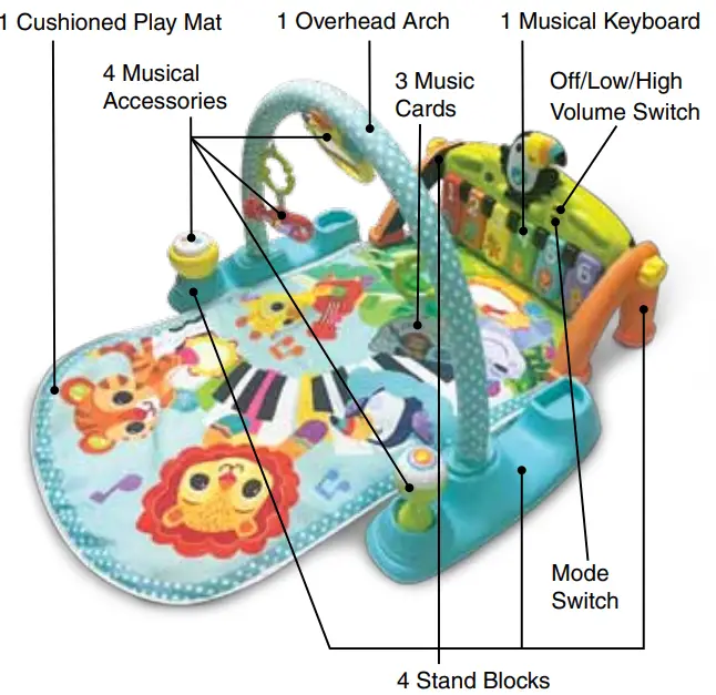 • Accessory List: 5-in-1 Toucan Tunes Play Gym Pieces, Quick Start Guide