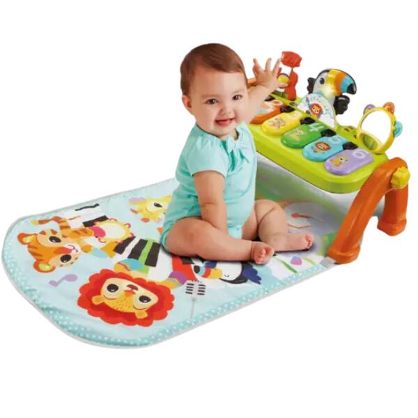 • Soft cushioned play mat, overhead arch and piano with six chunky keys surrounds baby with musical discovery.
