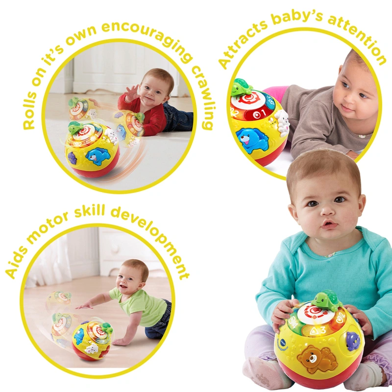 • The Vtech Crawl and Learn Bright Lights Ball rolls on its own! This sweet baby toy has a built-in motor that moves the ball, encouraging baby to crawl and chase.