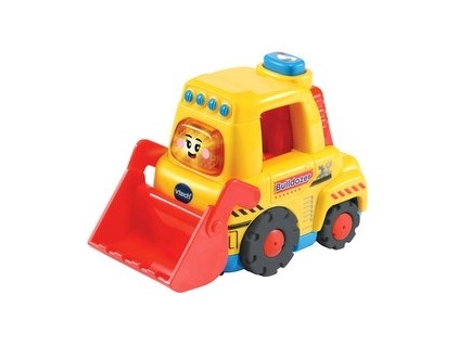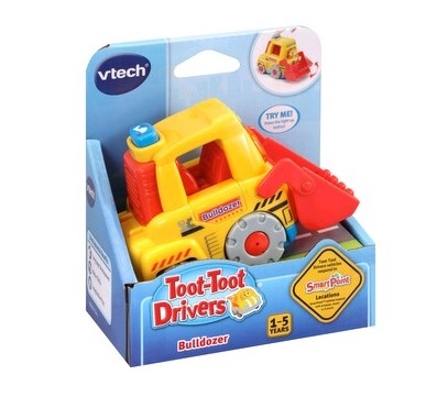 Hi, I’m a dependable bulldozer. Drive into the learning zone with the Toot-Toot Drivers bulldozer by VTech. This cute and chunky bulldozer is perfectly sized for little hands and will entertain your child with the light up face button that triggers fun music, realistic sound effects and songs. Press the feature button Push the bulldozer or press the feature button for more fun reactions and movements. Includes 3 sing-along songs and 6 lively melodies. Teaches singing, pretend play and sounds. Add to your Toot-Toot collection The bulldozer responds to SmartPoint locations with different phrases, sound effects and more on Toot-Toot Drivers play sets (each sold separately).