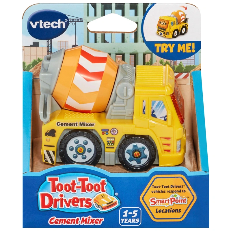 Push the cement mixer to trigger more fun reactions or spin the cement drum! Includes 3 sing-along songs and 6 lively melodies. Cement mixer responds to SmartPoint locations with different phrases and more on Toot-Toot Drivers play sets (each sold separately).