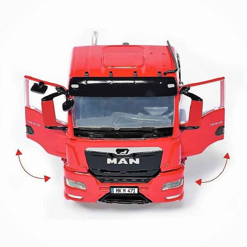 Introducing the Wiking 1:32 MAN TGS 18.510 4×4 2 Axle Truck – Red. WIKING presents the two-axle solo tractor unit with the finest detailing and decoration. The model consists of a combination of plastic and die-cast zinc components. The mix of the two materials in the 1:32 miniature makes the strikingly realistic impression perfect. The tractor unit surprises with a large number of delicate, movable elements that fully correspond to the internationally popular and reputable scale and its possibilities.