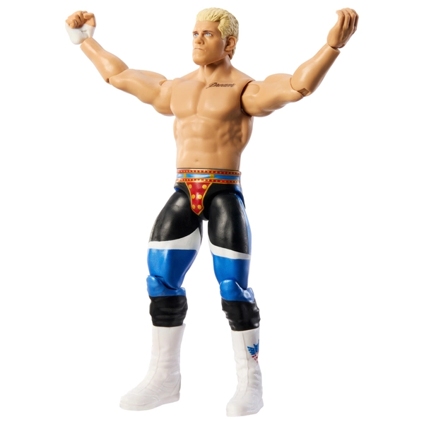 Introducing the WWE Main Event Series Cody Rhodes 153 Action Figure. Step into the ring and recreate the excitement with WWE Main Event action figures! Get ready to rumble with this 6-inch scale figure. Whether it’s Monday Night Raw, Friday Night SmackDown, NXT, or WWE Network Premium Live Events. This figure is also primed for epic showdowns. Featuring multiple points of articulation, including newly upgraded hip joints, along with authentic ring gear and detailed TrueFX face scanning technology. This WWE Main Event action figure is also geared up to bring the action of the WWE® to life!