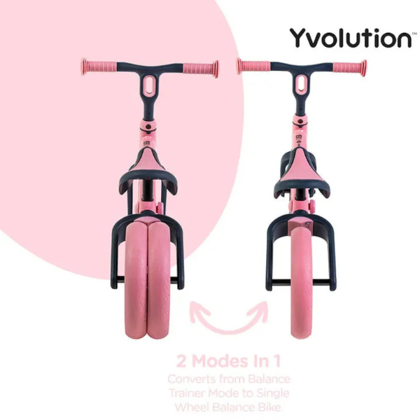 Introducing the Yvolution Velo Junior Balance Bike Refresh Light Pink. The Yvelo Junior balance bike is back after a makeover. But rest assured, its characteristics are identical: it is still evolutionary and essential. They have simply reworked its ergonomics for even smoother learning!